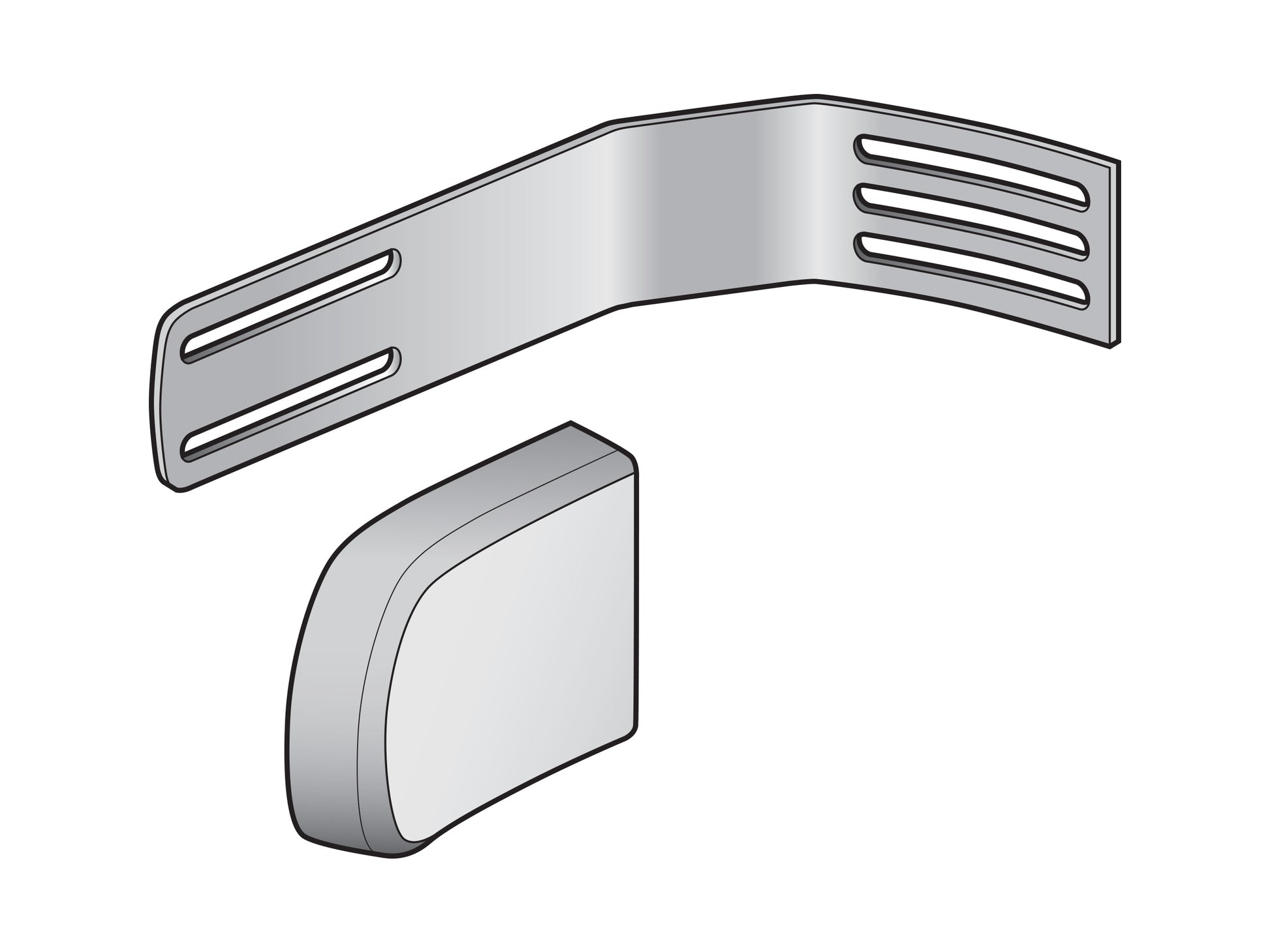 Constructed of steel for strength, Fixed lateral pad bracket attaches to the pad. To adjust vertical pad rotation, loosen the two screws attaching the pad bracket to the hinge, rotate pad bracket +/- 10 degrees, and tighten screws. Pad brackets are long size for Fixed lateral supports.