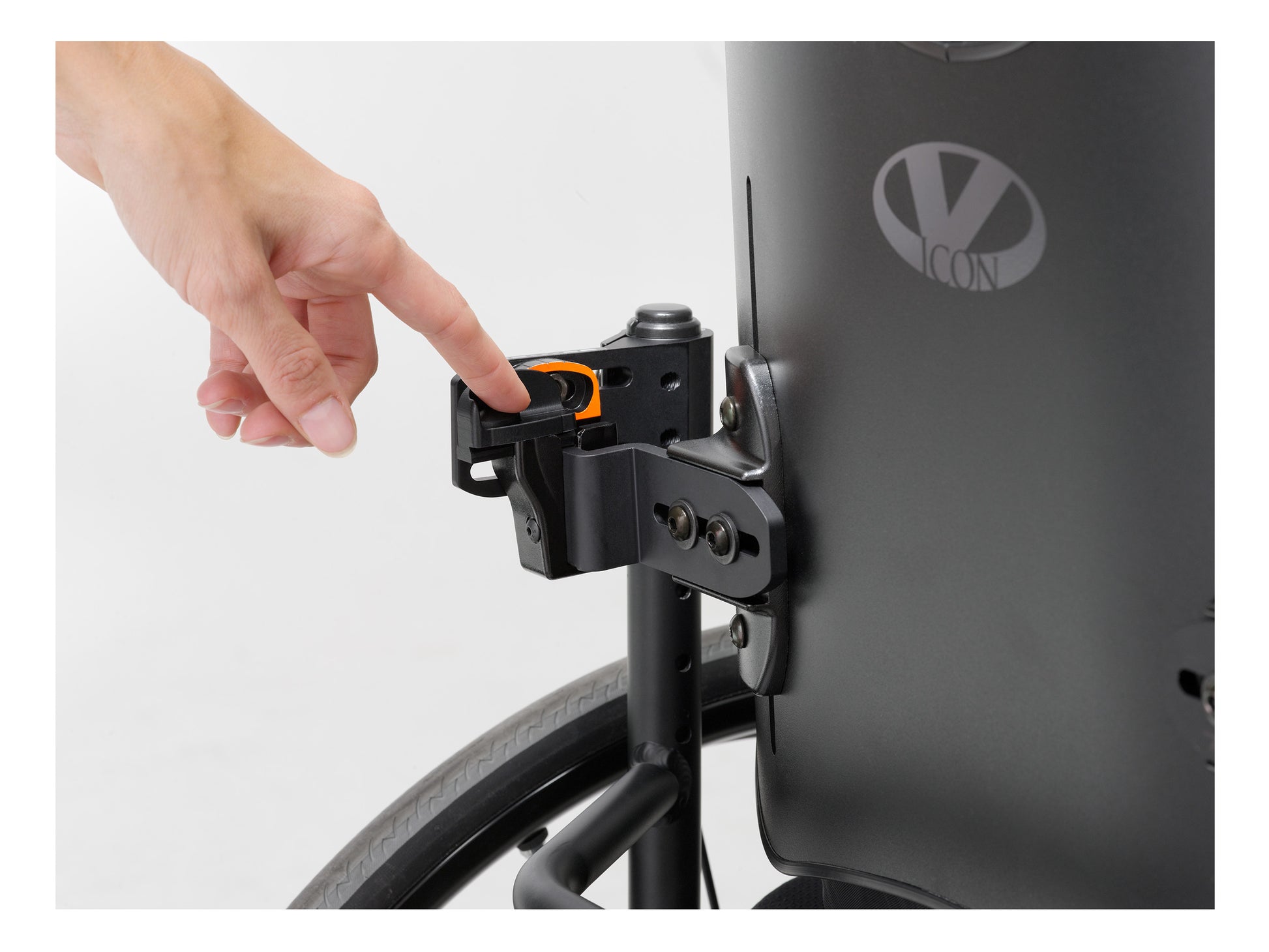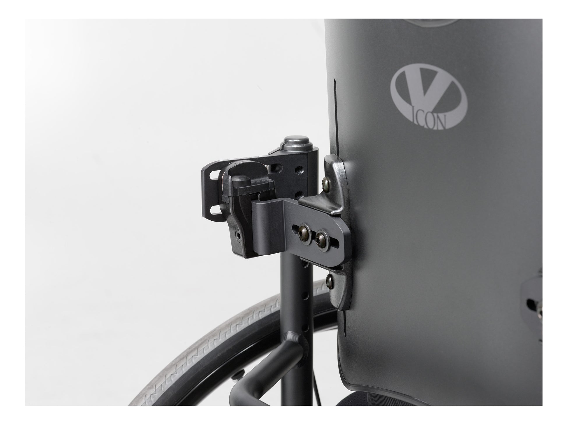 Once adjusted, Icon hardware stays in place. Cane Brackets clamp securely and will not slip. The innovative Adjuster Plate mechanism for recline adjustment is positive locking to prevent the back support from moving during Activities of Daily Living or other times when heavy loads are placed on it.