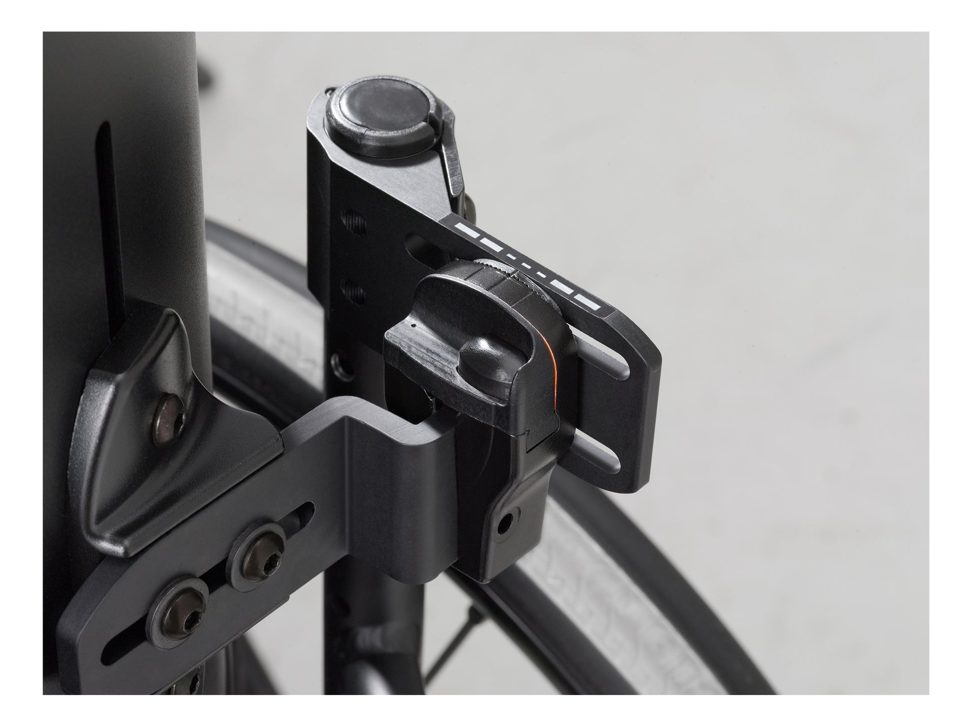 Operating the system is as easy as opening the caps and sliding the back support out of the hardware. The caps stay in an open position until the back is removed, making it simple to remove the support with one hand or limited dexterity. The hardware guides the back support into position with minimal effort and the caps locks securely into place. Orange safety markings alert the user that a cap is open and not in the locked position.