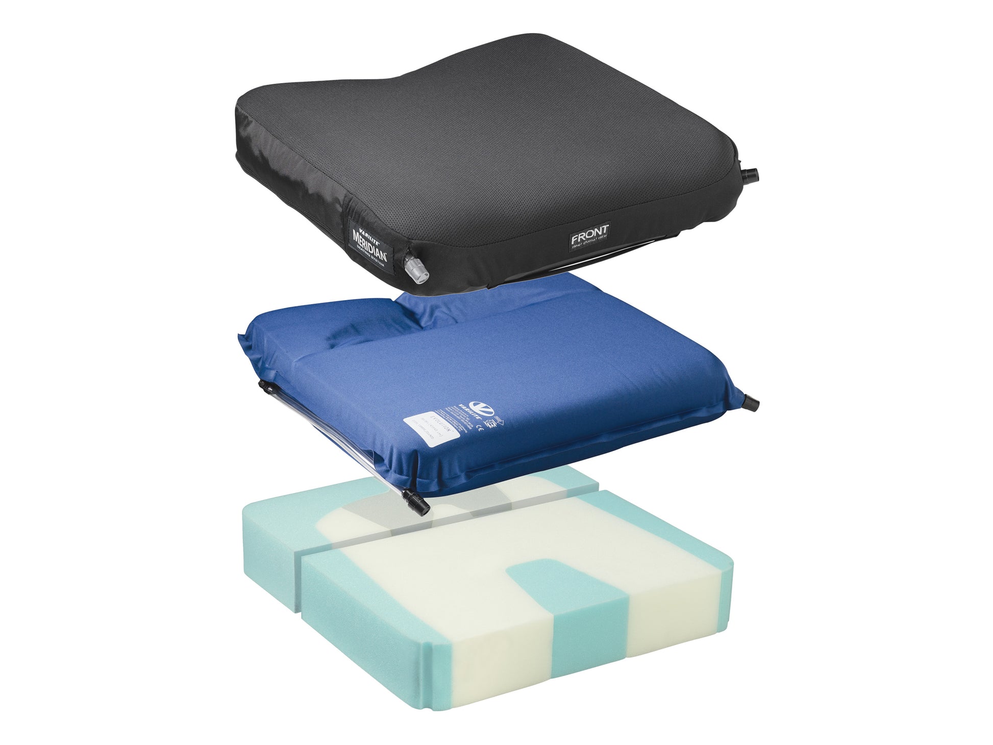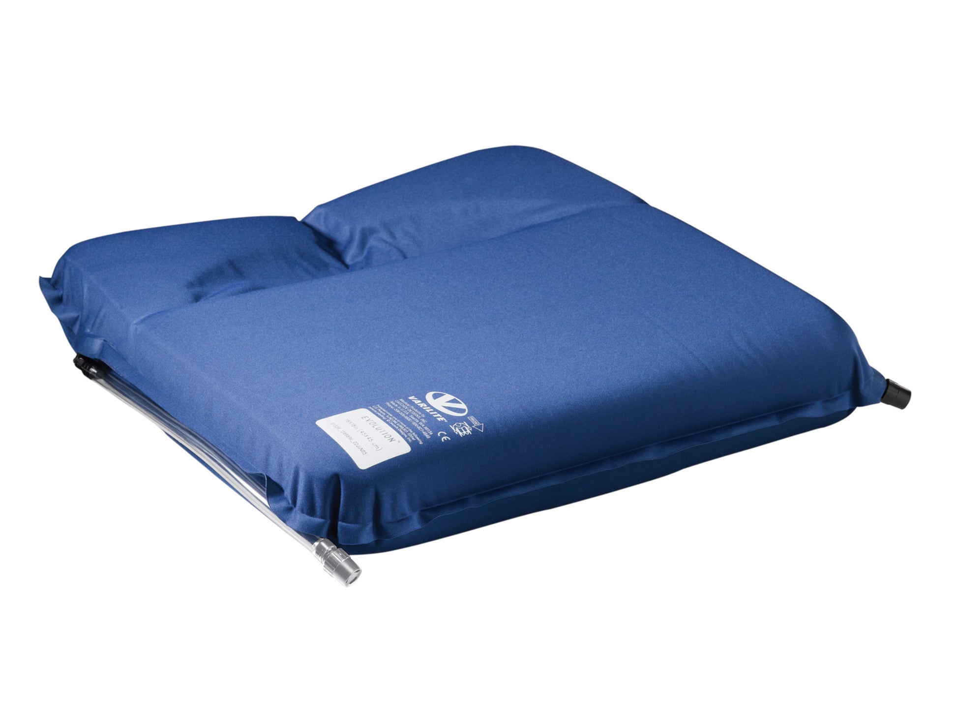 Dual-chambered, adjustable skin protection cushion. Ideal for prevention of sacral sitting.